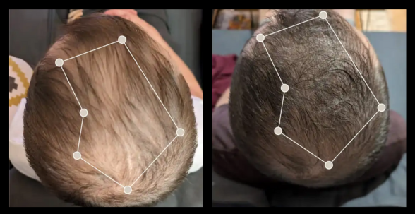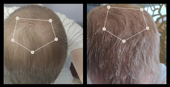 On prend et compare systématiquement tes photos de la première séance à la dernière pour analyser la repousse capillaire.